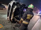 "Водій не впорався з керуванням, наїхав на відбійник та перекинувся на правий бік на проїжджій частині. Загиблих унаслідок ДТП немає. Водія та пасажирів на місці оглянули працівники екстреної медичної допомоги. Усі відмовилися від госпіталізації", - йдеться у повідомленні.