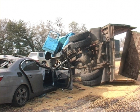 Попередньо, в крайній смузі їхали "ЗІЛ" та "МАЗ". "ЗІЛ" рухався трохи попереду. Зненацька "МАЗ" на швидкості наздогнав "ЗІЛ ззаду. Від удару вантажівка стала на два колеса і у такому положенні полетіла у сусідню смугу, де в той момент якраз проїжджав "БМВ".