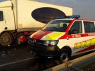 Унаслідок ДТП травм зазнали 3 людей із легкових та вантажних автомобілів. Рух по трасі відбувається у реверсному режимі.