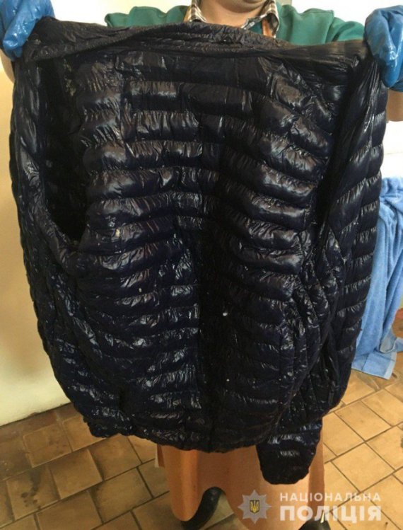 Був одягнений в темно-синю куртку, жилетку чорного кольору з двома кишенями з боків і двома кишенями зверху, светр темного кольору з капюшоном, спортивні штани темного кольору, спортивні кросівки і шкіряні чорні рукавиці.