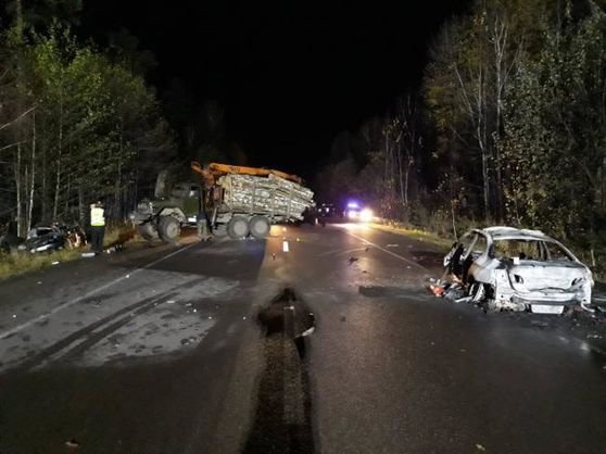 Водій другої легкової машини і водій лісовоза не постраждали.