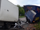Як з'ясувалось згодом, водій вантажівки, що рухався позаду, заснув за кермом та влетів у припарковану вантажівкою.
