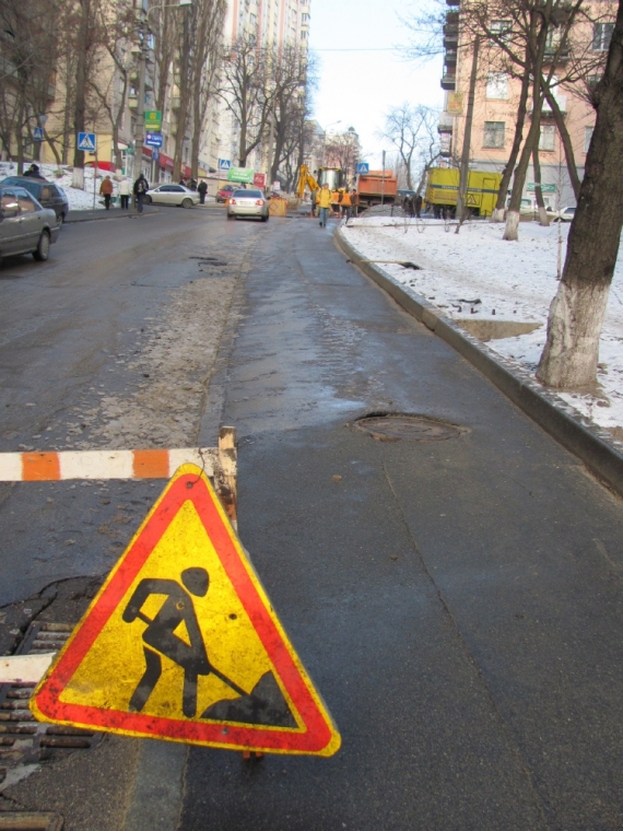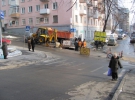 Опівдні на місці аварії працює бригада ремонтників. За допомогою трактора з ковшем виймають уламки асфальту з провалля. Поряд насипано купу щебеню. Скільки триватиме ремонт робітники не кажуть. Пояснюють, що спочатку мають з'ясувати наскільки сильно пошкоджений трубопровід.
