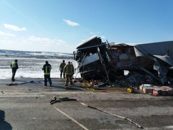 На трасі Київ – Одеса у лоб зіткнулися вантажівки Man TGX і Renault Magnus. Обидва водії загинули.