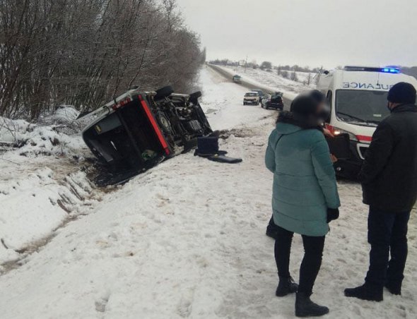 На трасі Суми - Пирятин, неподалік села Галяво Лубенського району в Полтавській області, 28 січня перекинувся пасажирський мікроавтобус.