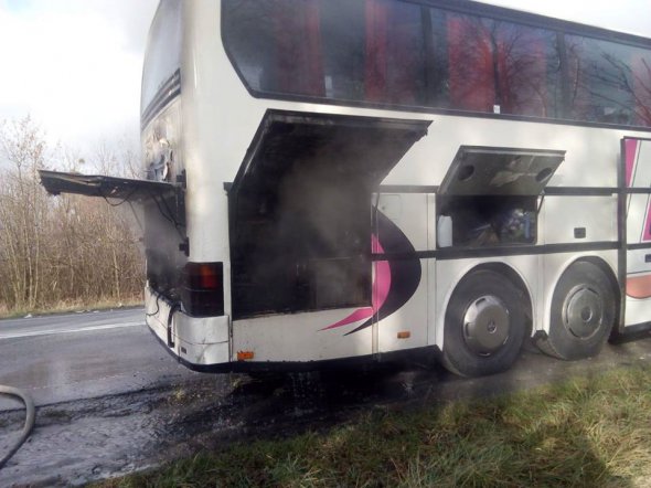 На трасі Київ-Чоп поблизу села Грушвиця Рівненського району загорівся двоповерховий пасажирський автобус міжнародного сполучення Харків-Познань.