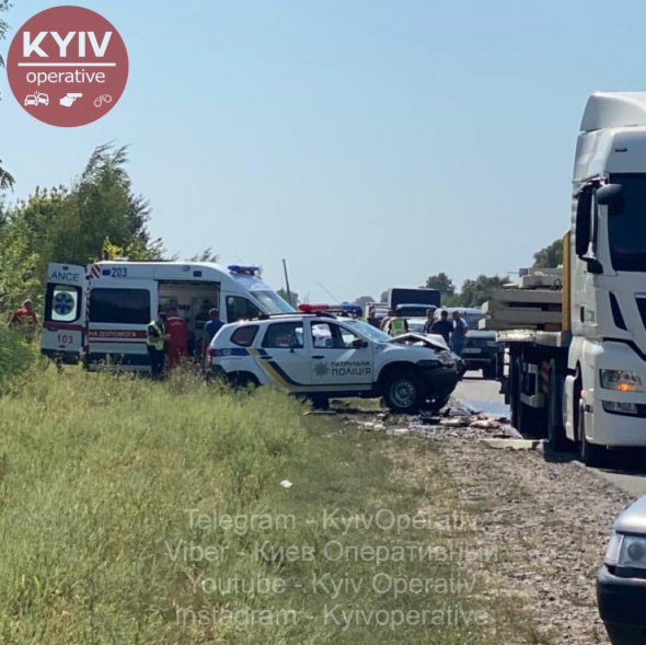 2 вересня на трасі Київ - Одеса сталася масштабна ДТП за участю автомобіля поліції і вантажівок.