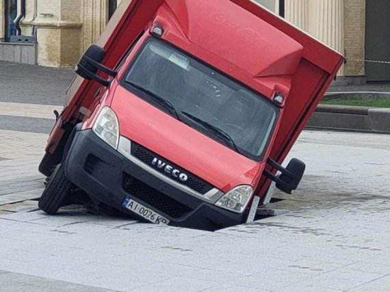 Уранці 2 вересня на пл. Арсенальній у Києві вантажівка провалилася в дорожнє покриття.
