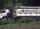 "Водій автоцистерни "Вольво" рухався у напрямку Житомира. Поблизу села Хажин Козятинського району Вінниччини він не впорався з керуванням та на великій швидкості зіткнувся з автомобілем "ЗІЛ". Той їхав попереду у попутному напрямку. 56-річний водій не встиг зреагувати", - розповідають у секторі зв'язків з громадськість обласної міліції.