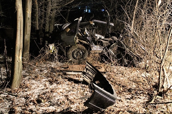 Авто виїхало на смугу зустрічного руху і з'їхало в кювет. Від удару в дерево у машини знесло дах і її розламало на чотири частини. За попередньою версією правоохоронців, у авто лопнуло переднє ліве колесо.