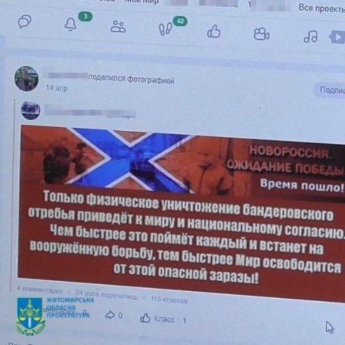 Житель Коростишева Житомирської області публічно закликав до підтримки злочинів Росії.