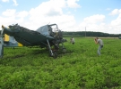 "Пілот літака, 51-річний мешканець селища Озерне Житомирського району, здійснював тренувальний політ з міста Житомир до міста Бердичів. За його словами, через сонце він, втративши орієнтацію у просторі, не помітив високовольтної повітряної лінії електропередач 35 кВ, внаслідок чого, зачепившись за неї, літак упав. Від удару об землю повітряне судно позбулося двигуна і на шасі перекинулося назад", - розповіли рятувальники.