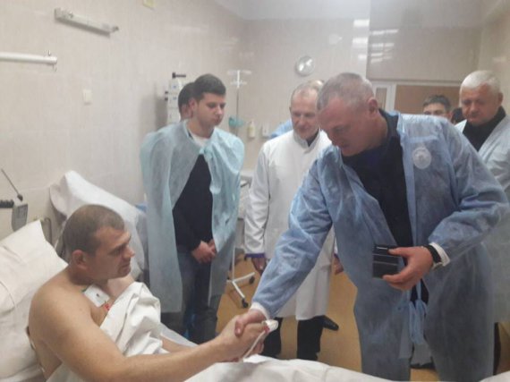 "Розмовляв з батьками хлопців. Потиснув руки. Присвоїв звання підполковника техніку-експерту, якому влучили осколки гранати в живіт. Молоді хлопці, опер та слідчий, незважаючи ні на що, жартують. Обіцяли незабаром вийти на роботу. Догляд та лікування за пораненими забезпечений керівником поліції Дніпропетровщини. Одного пораненого після консиліуму заберемо у Київський шпиталь МВС", - повідомив Князєв.
