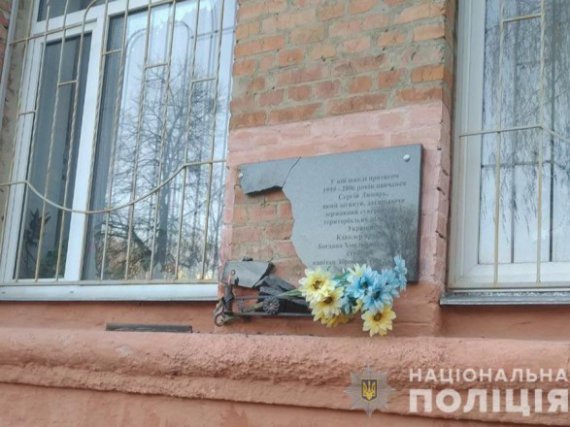 Пошкодили меморіальні таблиці Мирославу Кабушці на стіні школи № 18 та Сергію Лимарю на стіні школи № 9. Злочинець хотів знищити таблицю Олександру Горячевському на стіні школи № 25. Дошка виявилася антивандальною і злочинцю не вдалося її розбити.