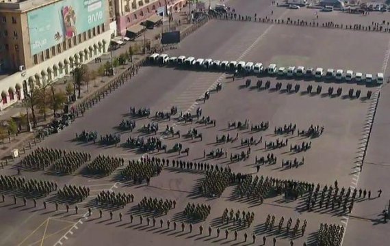 Загиблих пронесли через площу, оголошуючи імена, до місць, відведених для їхніх родичів. Після чого в небі пролетів літак ІЛ і винищувачі. Пам'ять загиблих вшанували хвилиною мовчання.