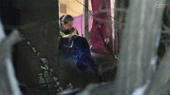 Труп з відірваною кінцівкою звисав з вікна. Під вікном утворилась величезна калюжа крові. Стіни в квартирі посічені осколками.