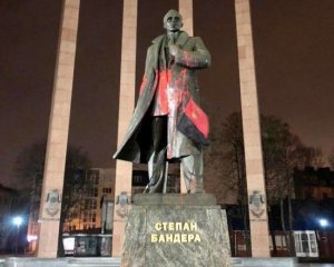 У Львові пам'ятник лідеру ОУН Степанові Бандері облили червоною фарбою.