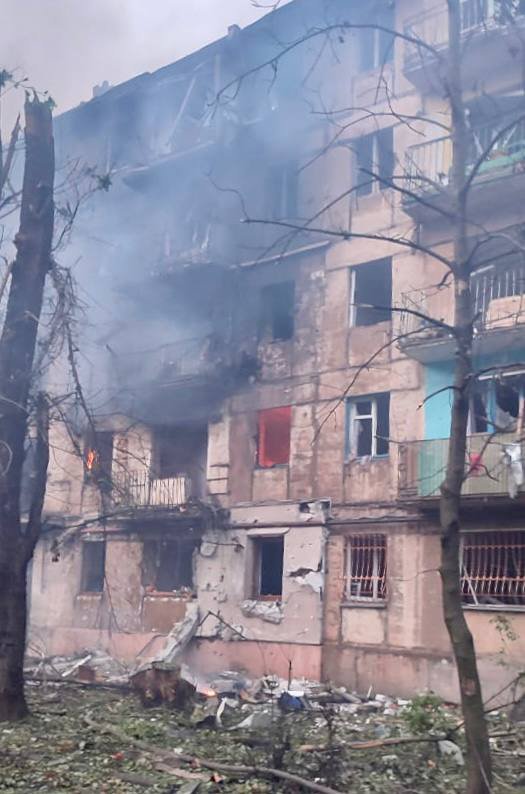 Одна з ракет пошкодила п'ятиповерхівку у Кривому Розі. Три людини загинуло, ще 25 осіб поранені.