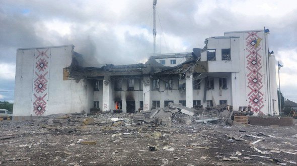 Загарбники знищили будинок культури, у якому розташовувався гуманітарний штаб. Про це повідомляє Дергачівська міська рада в Telegram.