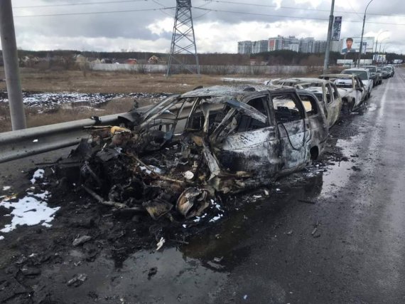 В Ірпені показали автомобілі людей, які обстріляли під час евакуації.