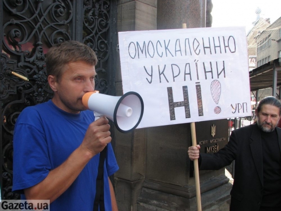 Учора в центрі Львова, поруч із фан-зоною євро-2012 на проспекті Свободи активісти Української республіканської партії провели акцію протесту проти мовного законопроекту Колесніченка-Ківалова.