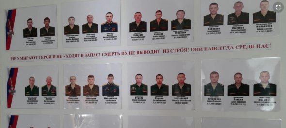 Журналісти також звернули увагу на те, що одному з російських військових на стенді з фотографіями загиблих – Микиті Акімову – Офіс генерального прокурора України повідомив про підозру в порушенні законів і звичаїв війни за злочини в Бучі.