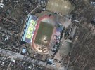 На них можна побачити житлові палаючі будинки, а також суттєво пошкоджений футбольний стадіон.