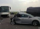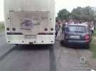 Через зіткнення "Ford Focus" виїхав на зустрічну смугу і врізався в автомобіль "Hyundai". Після пасажирський автобус зіткнувся ще зі "Skoda Fabia", яка стояла на узбіччі.