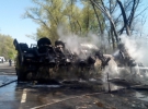 Зі слів очевидців, водія виймали із палаючої кабіни. Під час пожежі було чути вибухи.