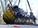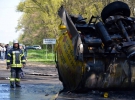 "Неподалік Чернігова перекинулася цистерна з нафтопродуктами. Вантажівка вигоріла вщент. Водія з численними опіками доправлено до лікарні. На місці події працюють кілька екіпажів вогнеборців", - розповів речник ДСНС у Чернігівській області Роман Храпатий.