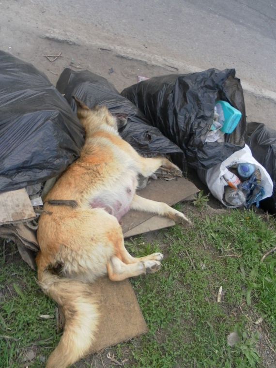 - О 3 годині ночі 20 квітня на териконі в районі вулиці Карпінського, напроти Калінінського ринку (недалеко від центру міста) сталося масове отруєння собак, - розповіла Gazeta.ua місцева мешканка Валентина Шевцова. - Більша частина собак була убита і нашвидку вивезена в сміттєвих пакетах вже до ранку. 20 квітня на териконі мною були виявлені два трупи дорослих собак та цуценята, через день від отруєння в страшних муках померла собака, у якої залишилося 10 сліпих цуценят. А всього було отруєно кількох десятків тварин.