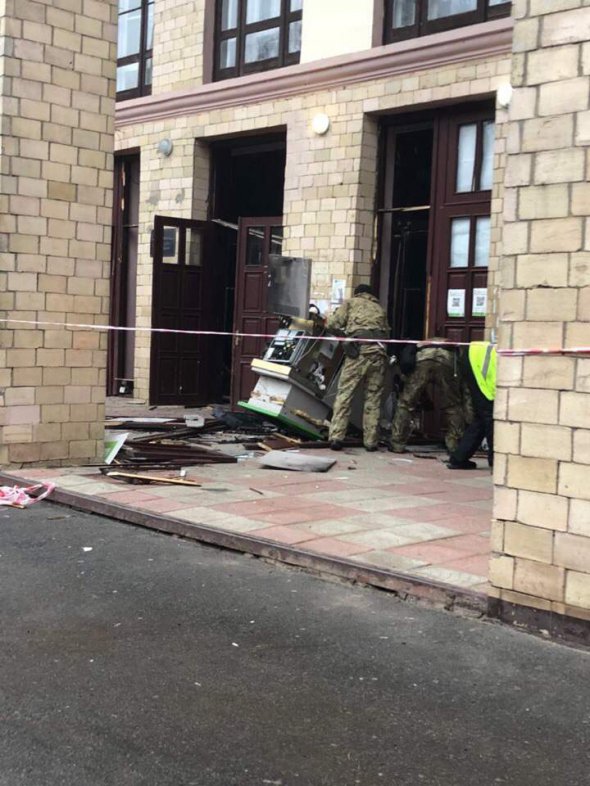 Там невідомі підірвали банкомат одного з банків, який був встановлений всередині.