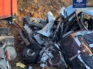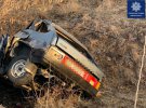 На фотографіях з місця аварії видно, що після зіткнення легковик вилетів з траси на узбіччя та перекинувся. Автомобіль отримав серйозні механічні пошкодження. Частина машини фактично перетворилася на металобрухт.
