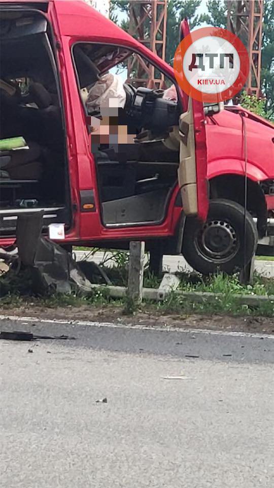 Унаслідок зіткнення водій мікроавтобуса загинув на місці, повідомляє dtp.kiev.ua.