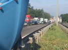 Побиті транспортні засоби перекрили всі смуги руху, крім однієї. Затор на в'їзд до столиці вже розтягнувся на 7 км.