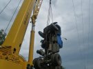Його вантажівку діставали краном під наглядом рятувальників. Вона була обладнана газовими балонами і стався витік пального.