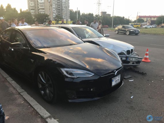 В Одесі на Люстдорфській дорозі BMW 5 E39 на литовських номерах врізався в припарковану на узбіччі Tesla Model S.