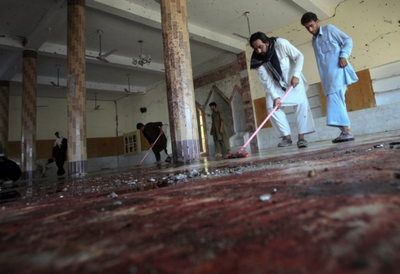 На кадрах, знятих на місці вибуху, можна побачити одяг і взуття, розкидані по мечеті вибуховою хвилею, і молитовні килимки, залиті кров'ю.
