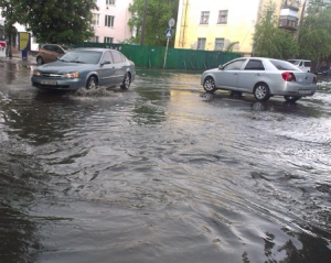 Перехрестя на Котовсього традиційно затоплене через неправильно побудовану зливову систему. На Київській утворився затор.