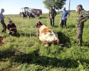 "Корову обв'язали мотузками і таким чином її витягли. Тоді з'ясували, що у корови — переломи. Тварина не могла стати на ноги", — каже Віталій Семенюк з прес-служби обласного управління МНС.