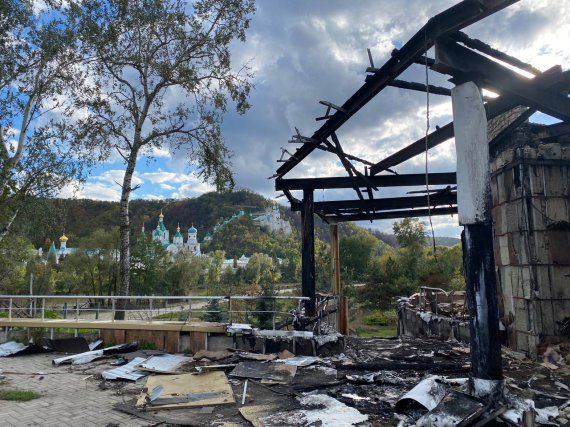 Керівнику турфірми Ігорю Захаренку до Свято-Успенської Лаври не вдалося потрапити через знищений міст. Однак йому вдалося зробити декілька фото. Він їх і оприлюднив у Telegram.