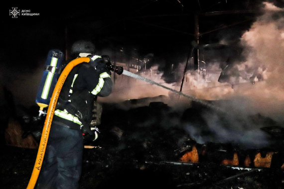 "Ліквідовано наслідки ворожої атаки безпілотників. Сьогодні вночі на території Фастівського та Бориспільського районів було ліквідовано загорання в складських приміщеннях, що виникли внаслідок падіння уламків БПЛА", - йдеться в повідомленні.