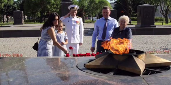Фото капітана ретельно приховують. Фото у ВКонтакте виклала "хрещена мати" підводного човна, депутатка Єлєна Кісельова. Праворуч від Нєрусіна його дружина, а ліворуч – донька.