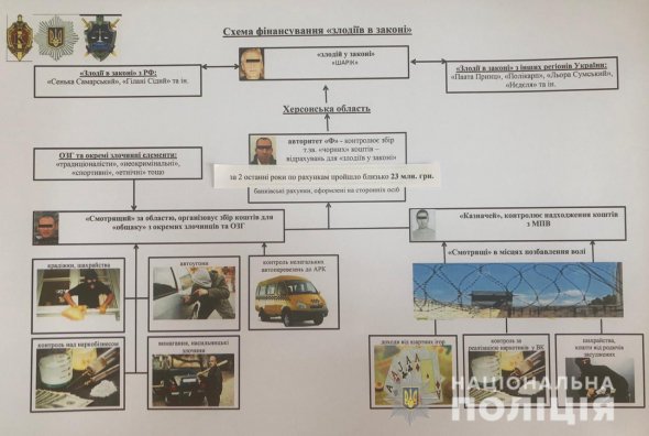 Зловмисники здійснювали контроль за протиправною діяльністю інших злочинних груп, а також осіб, які перебували у місцях позбавлення волі. Фігуранти збирали для злодійського "общака" гроші. Надалі ці кошти використовувалися для особистих потреб "злодіїв у законі". Крім того, кошти йшли для забезпечення кримінальних "авторитетів" цигарками і алкоголем у місцях позбавлення волі, а також придбання мобільних телефонів. На ці ж кошти організовувалися злочинні "сходки", здійснювався підкуп службових і посадових осіб, наймалися адвокати для інших членів злочинної організації, а також проводилися акції із дискредитації правоохоронних органів України, повідомляє Національна поліція.