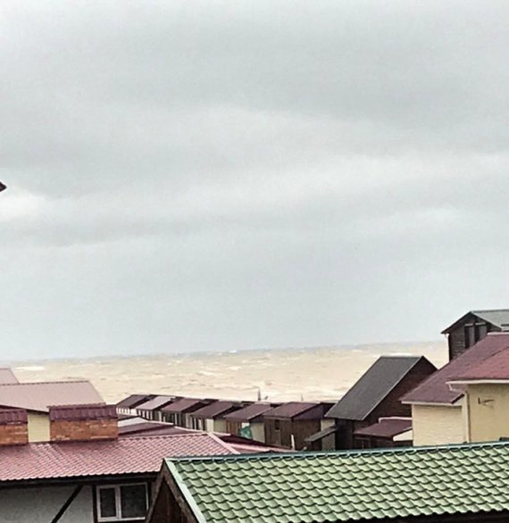 Потужний вітер з силою у 16 м/с і поривами до 24 м/с підняв півтораметрові хвилі, які підтопили будови на Федотовій косі. На відео відзняли, як над морем нависли темні хмари.