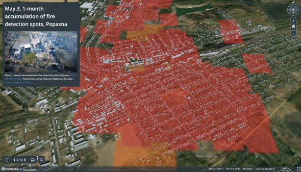 Найбільше руйнувань зафіксували в Попасній. На показаній мапі чітко видно, що росіяни нищать все підряд.