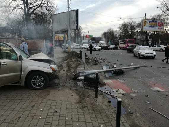 "Лексус летів на зелене, але дуже швидко, там 120-140 км/год швидкість була. А ті дві машини повертали наліво з Липинського на Замарстинівську. Той на Лексусі, щоб уникнути хоч трохи зіткнення, звернув і врізався в світлофор, аж зніс його. Там колеса в машині повідривало", – розповів свідок аварії Степан.