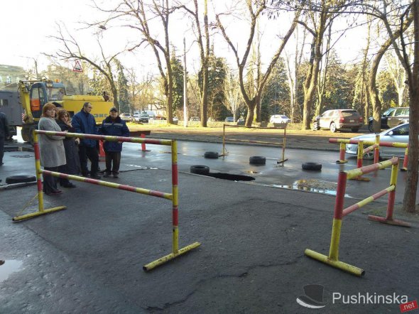 "Коли проблему усуватимуть, присутні на місці комунальники не знають. Вони відзначили, що просили поліцію повністю перекрити цю ділянку дороги, але правоохоронці, за їх словами, відмовилися. В результаті часткового перекриття проїзної частини на дорозі утворився затор",- йдеться в повідомленні.