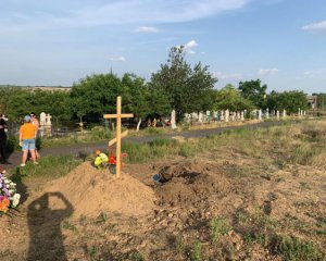 "Бійці Національної гвардії України звернули увагу на свіжу могилу без хреста на території кладовища в селищі. Коли частково згорнули насип землі, побачили замотані скотчем ноги. Було встановлено, що в цьому місці без відповідного дозволу, за відсутності родичів, без труни раніше був похований таким варварським способом 59-річний чоловік", - розповів Аброськін.