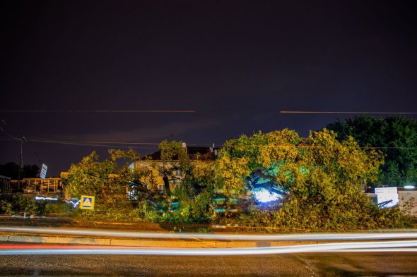 Ураган із шквальним вітром на Миколаївщині тривав лише 20 хв. Дерева виривало з корінням, зносило дахи та лінії електропередач. Упала вежа мобільного зв'язку. Центр Первомайська завалили стовбури дерев.
